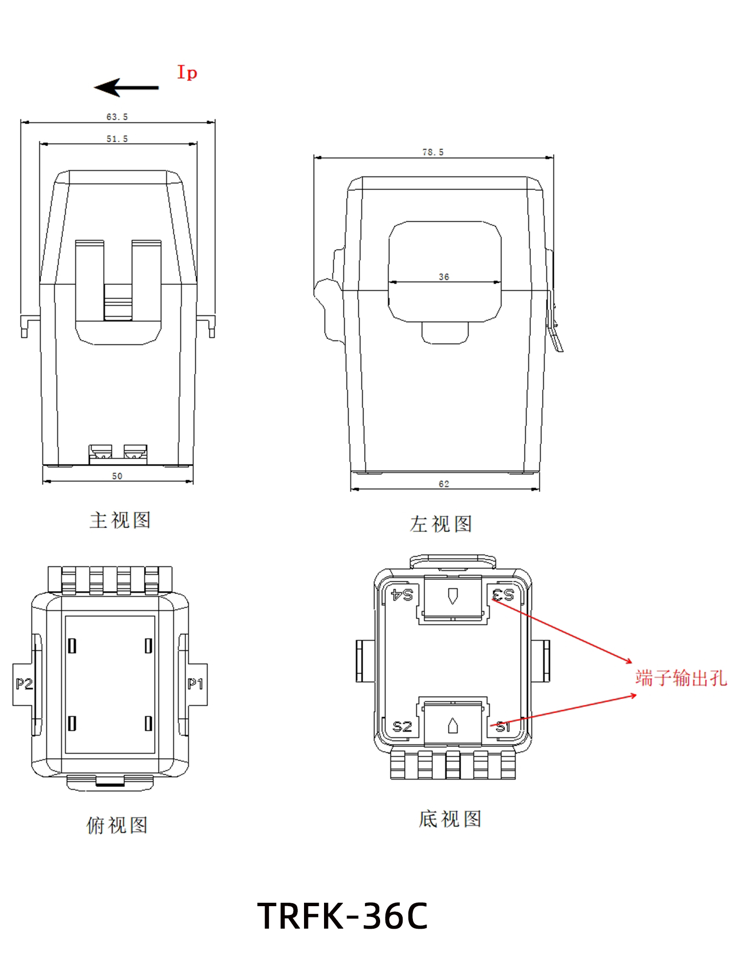 TRFK-36C 200A~600A 1A、5A 36 63.5 78.5 106